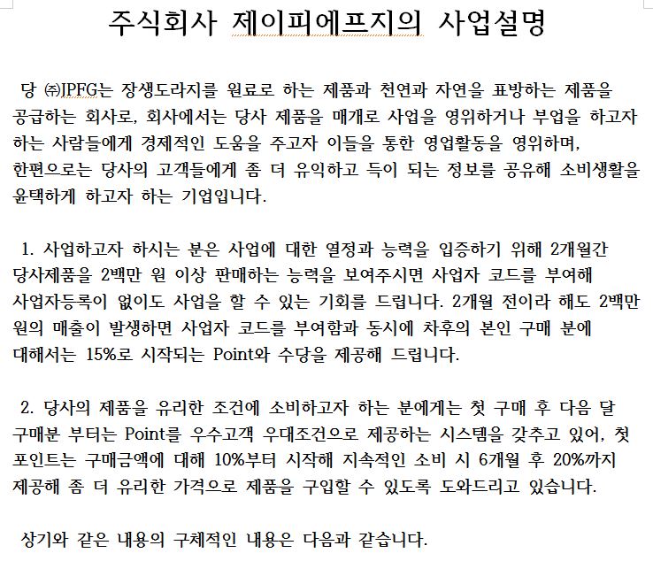 | 제목 | 주식회사 제이피에프지의 사업설명회 | ||||