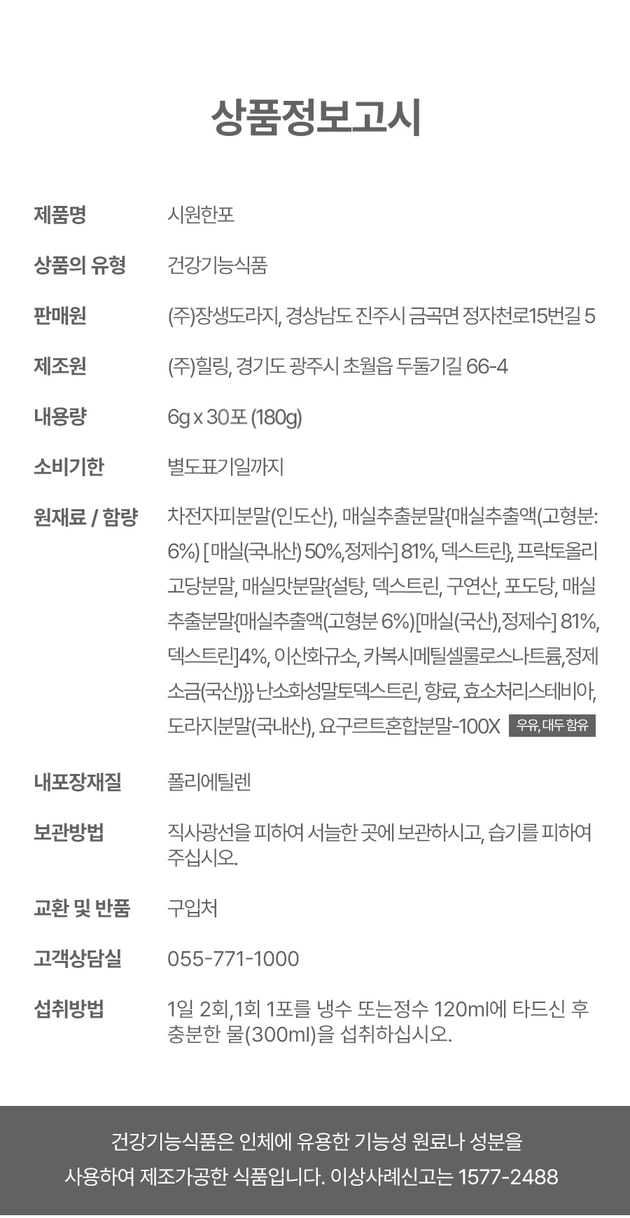 - 오발송 및 파손된 상품에 대한 내용은 고객센터 (02-566-5330)로 문의 주시기 바랍니다.