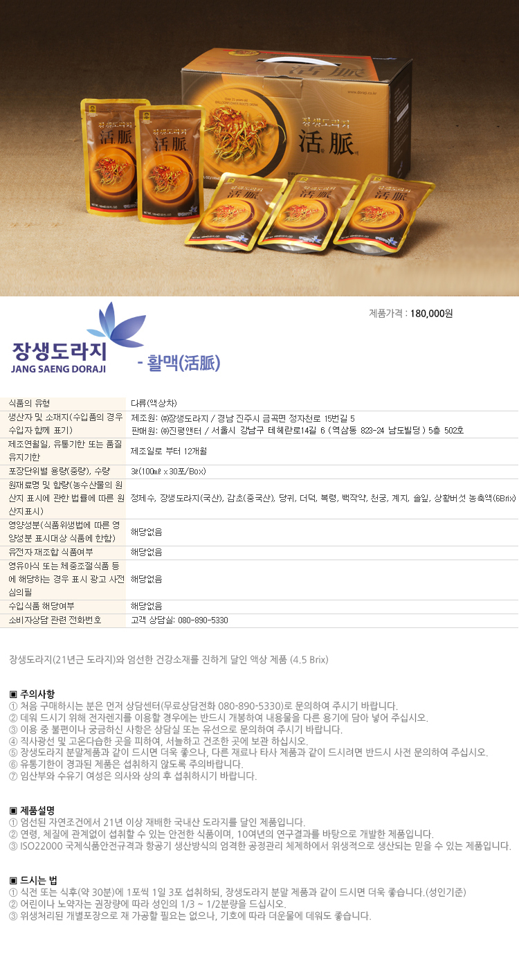 장생도라지 활맥