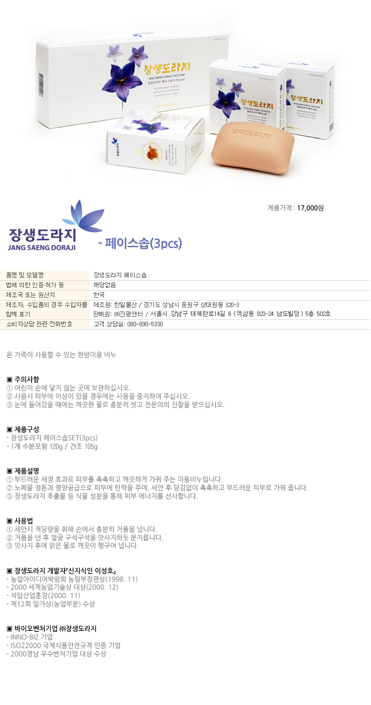 장생도라지 페이스솝(3pcs)